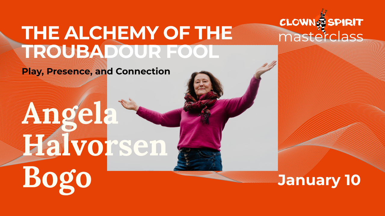 Angela Halvorsen Bogo is a Transformational Play Facilitator, Storyteller, Troubadour, Retreat Leader, Therapeutic Clown, Coach, as well as Founder of Renaissance of Troubadours, Festival of the Fool and We-Play.