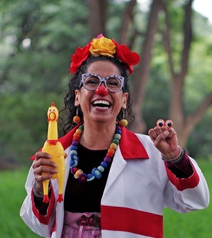 In California, she worked with the University of Southern California on a research project studying the impact of clowning in hospitals. She is part of the teaching staff at The Clown School and serves as Artistic Director of ELBA (Latin American School of Wellbeing and Joy).